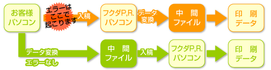 ![]() 今まで印刷に不向きとされていた、ワード・エクセル・パワーポイントデータ。 しかしフクダ P,R.印刷指定の方法でデータを変換して頂ければ、 「ワード」「エクセル」「パワーポイント」などのデータを印刷することができます。 また弊社ではお客様が作成されたデータに「ちょこっとお直し」も承っております。 ●データー変換とは? 「ワード」「エクセル」「パワーポイント」などで作成したデータそのままを弊社に頂くと 文字が化けてしまったり、文字列が崩れたりと様々なトラブルが起こります。 お客様のパソコンとフクダP,R.印刷のパソコンの環境が違うために起こるトラブルです。 これを防ぐためにはどんな環境でも崩れないデータを作る必要があります。 それが、お客様にデータ変換作成をお願いする「中間ファイル」なのです。 ![]() ●中間ファイルの作り方 最初だけ「SCREEN MultiStudio 5.00」というプリンタドライバを インストールして頂かないといけませんが、一度セッティングすれば後は 中間ファイルはプリントする要領で簡単に作成できます。 ◆◆ index◆◆ SCREEN MultiStudio 5.00」のインストール方法 ワードの場合 /エクセルの場合 / パワーポイントの場合